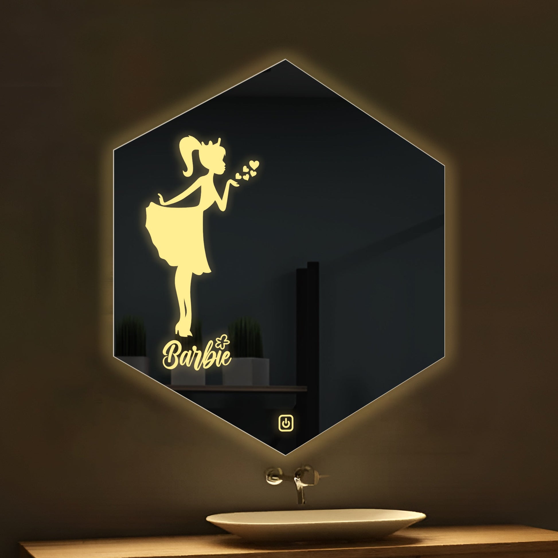 Hexagon Shaped Fairy Barbie Girl Design LED Bathroom Wall Mirror