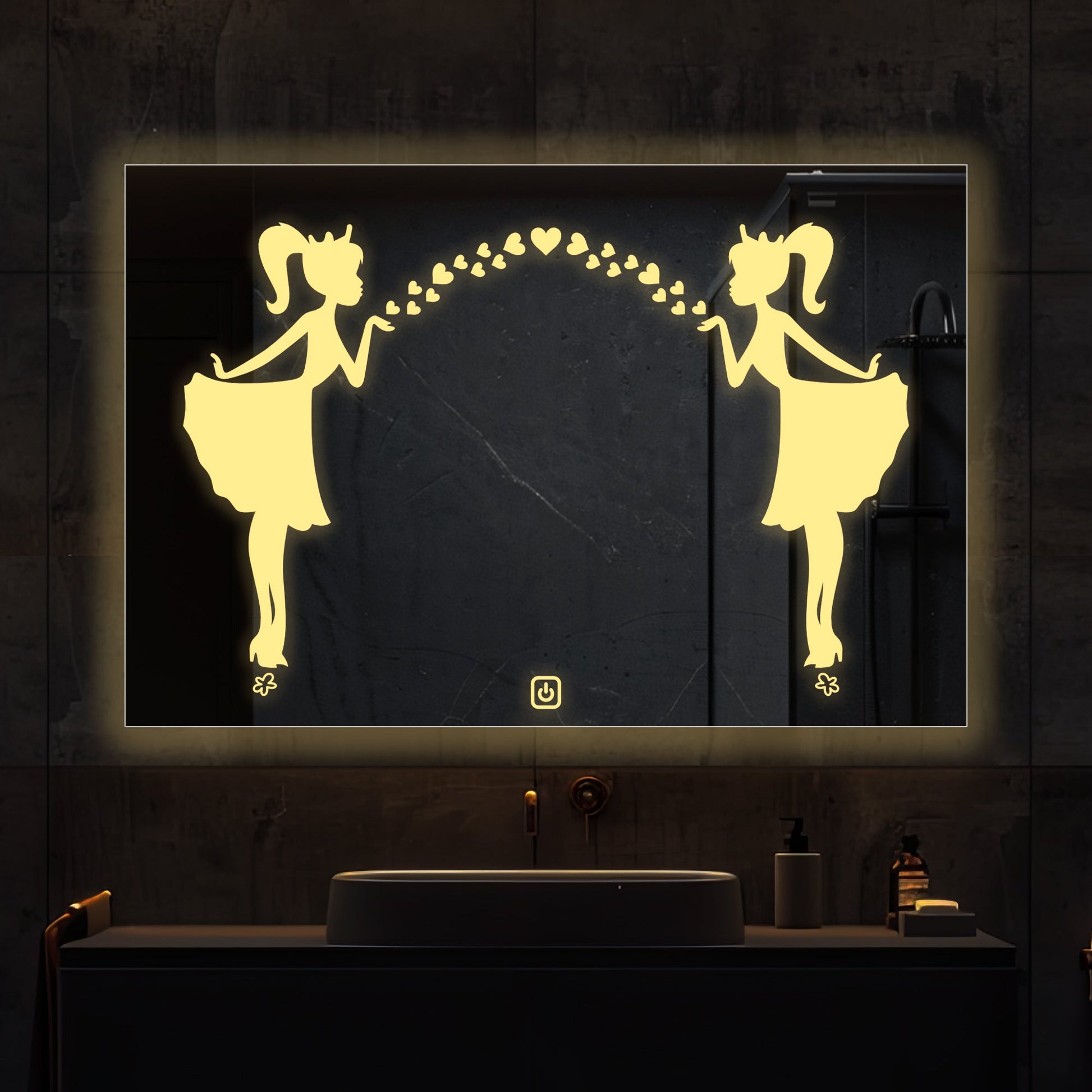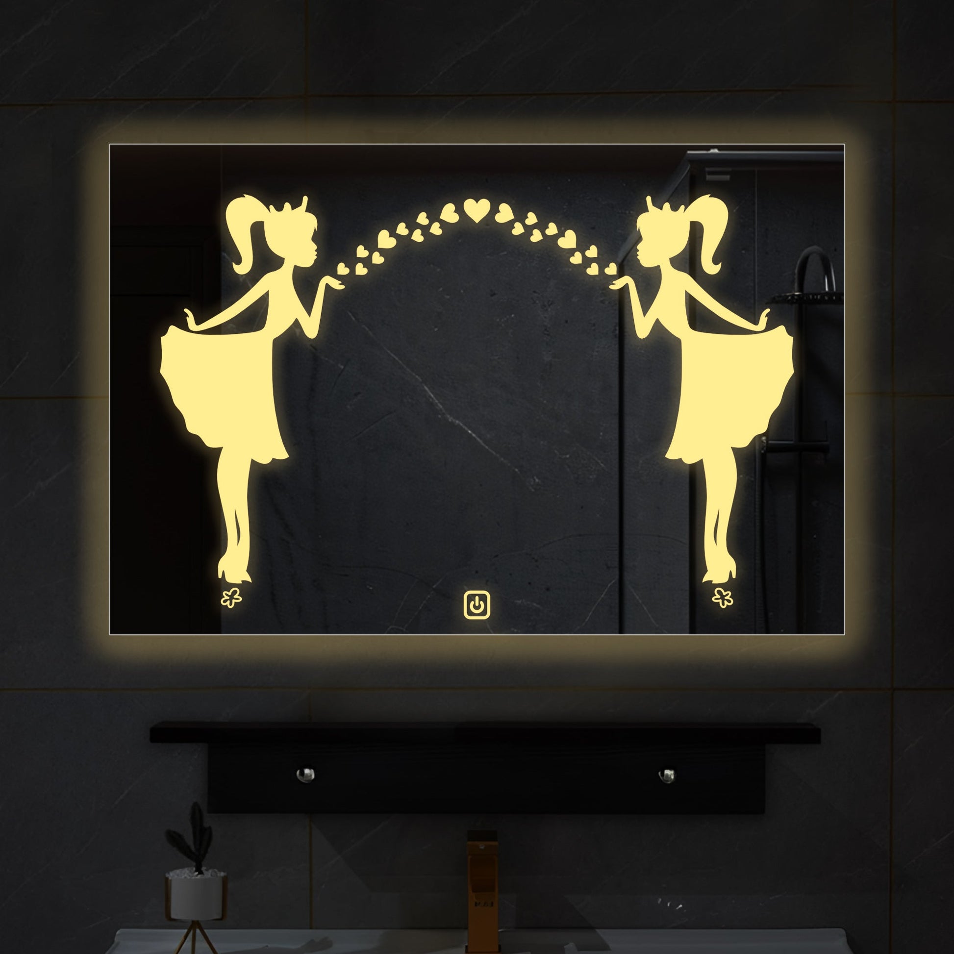 Rectangular Shaped Fairy Girl Design LED Bathroom Wall Mirror